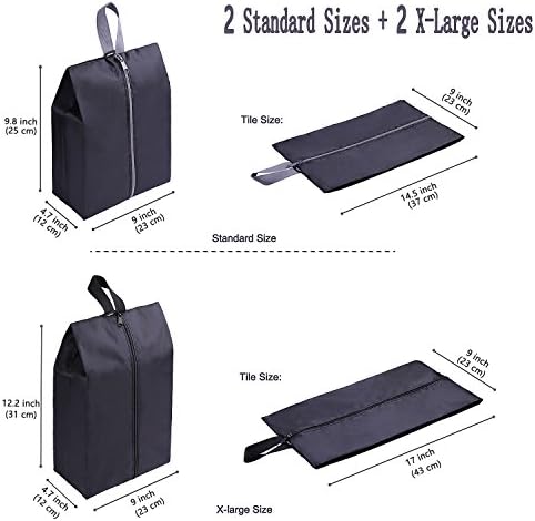 【2 Perfect Sizes of Choices】Set of 4, 2 standard sizes +2 X-Large sizes= Perfect size for both lady shoes and man shoes. Standard size: (9″L x 4.7″W x 9.8″H), fit for shoes under size 10. X-Large size: (9″L x 4.7″W x 12.2″H), Large enough for men shoes between Size 10 to Size 14. Also can store 2 pairs of kid shoes, great kids shoe storage bags.